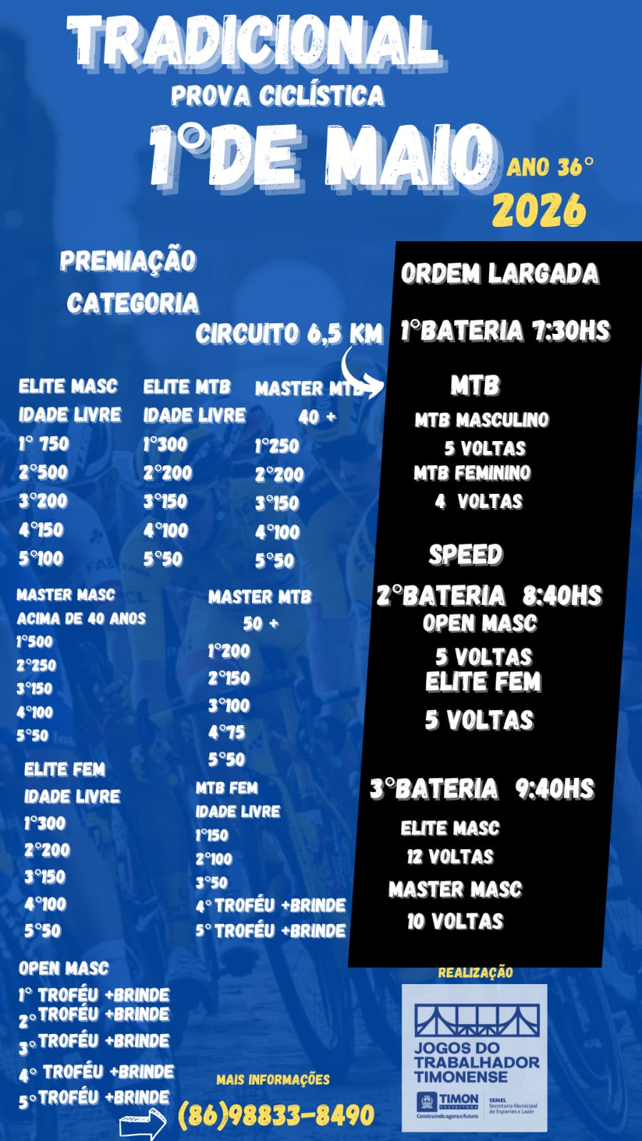 Com estrutura organizada, circuito dinâmico e premiação atrativa, o evento é uma excelente oportunidade para ciclistas profissionais e amadores testarem seus limites e celebrarem o esporte.